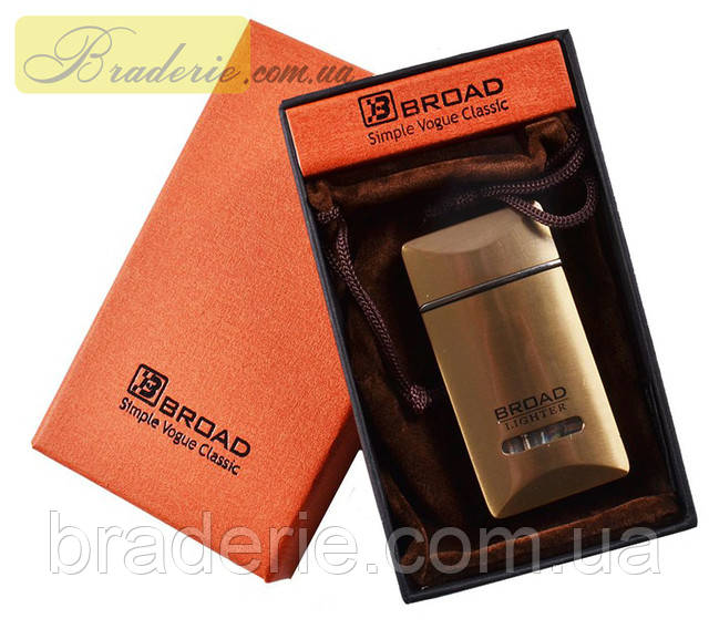 Газова запальничка Broad 3663 з п'єзоелементом в красивій подарунковій упаковці, відмінний подарунок для курця. У людини, яка палить, запальничка постійно на увазі, цей аксесуар дістається при прикуривании кожної сигарети і просто крутиться в руках. З цього кожен буде радий отримати в подарунок красиву, стильну запальничку.